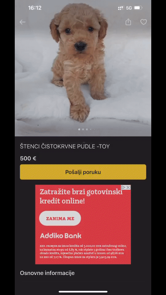 You can try it when you submit an ad on the Njuškalo mobile app. When you add a photo, the model suggests a category based on that photo. This image-classification model was trained on millions of labeled images from our dataset. The feature also shows the product price estimation, giving the user a sense of the possible profit.