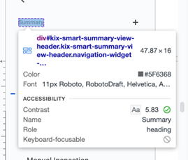 For example, you can use HTML selector in Dev tools to go over your site manually and check for accessibility issues on buttons, links, and texts to see whether they have a good contrast, name, or role and whether they are keyboard focusable: