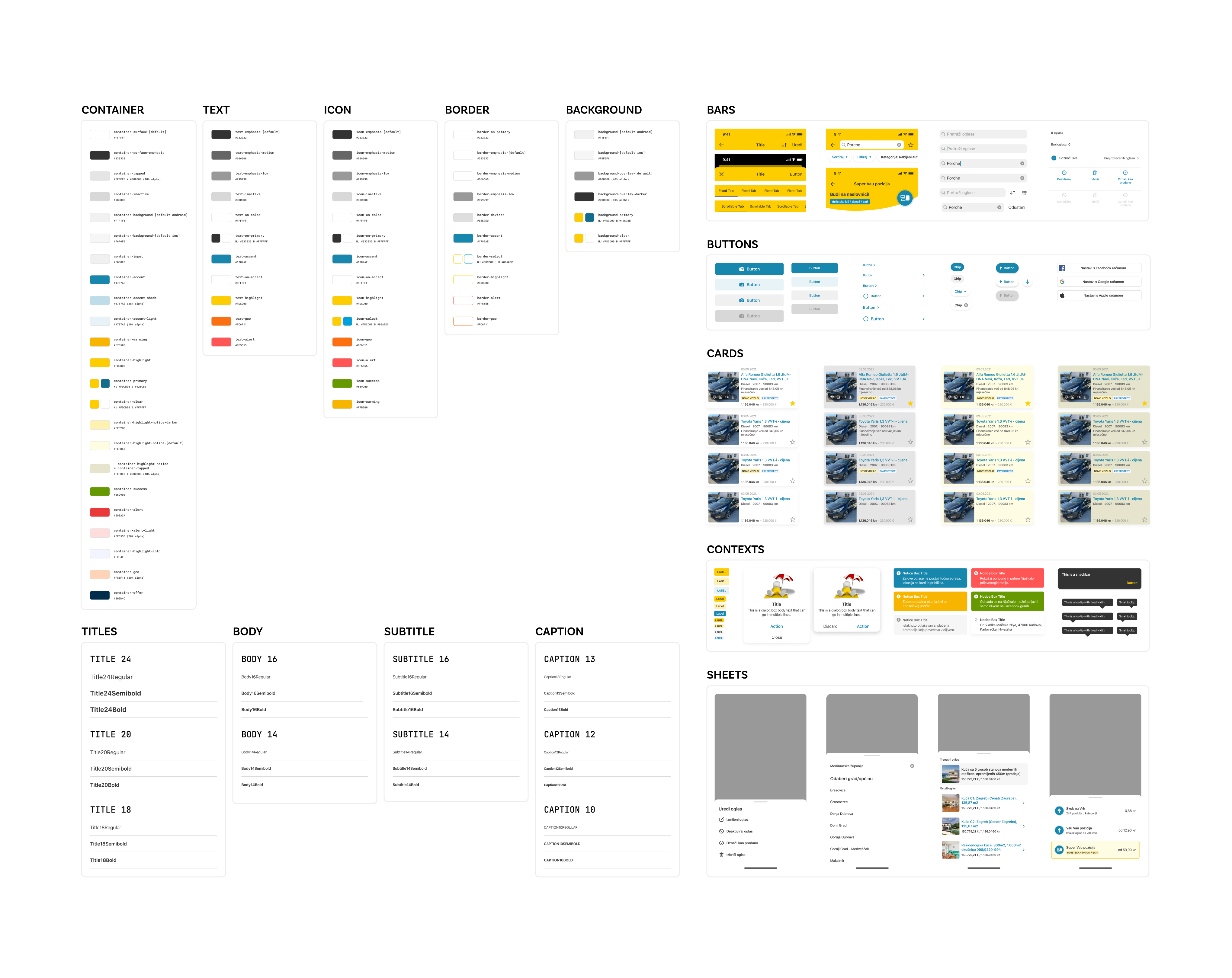 In 2020, we started adapting the iOS and Android Njuskalo apps for Bolha, a Slovenian Styria Group brand. As part of the team, I audited the current UI and found out that three different UI architectures coexisted with a wide variety of styles, components, and solutions. The team needed to declutter both the design files and the codebase.