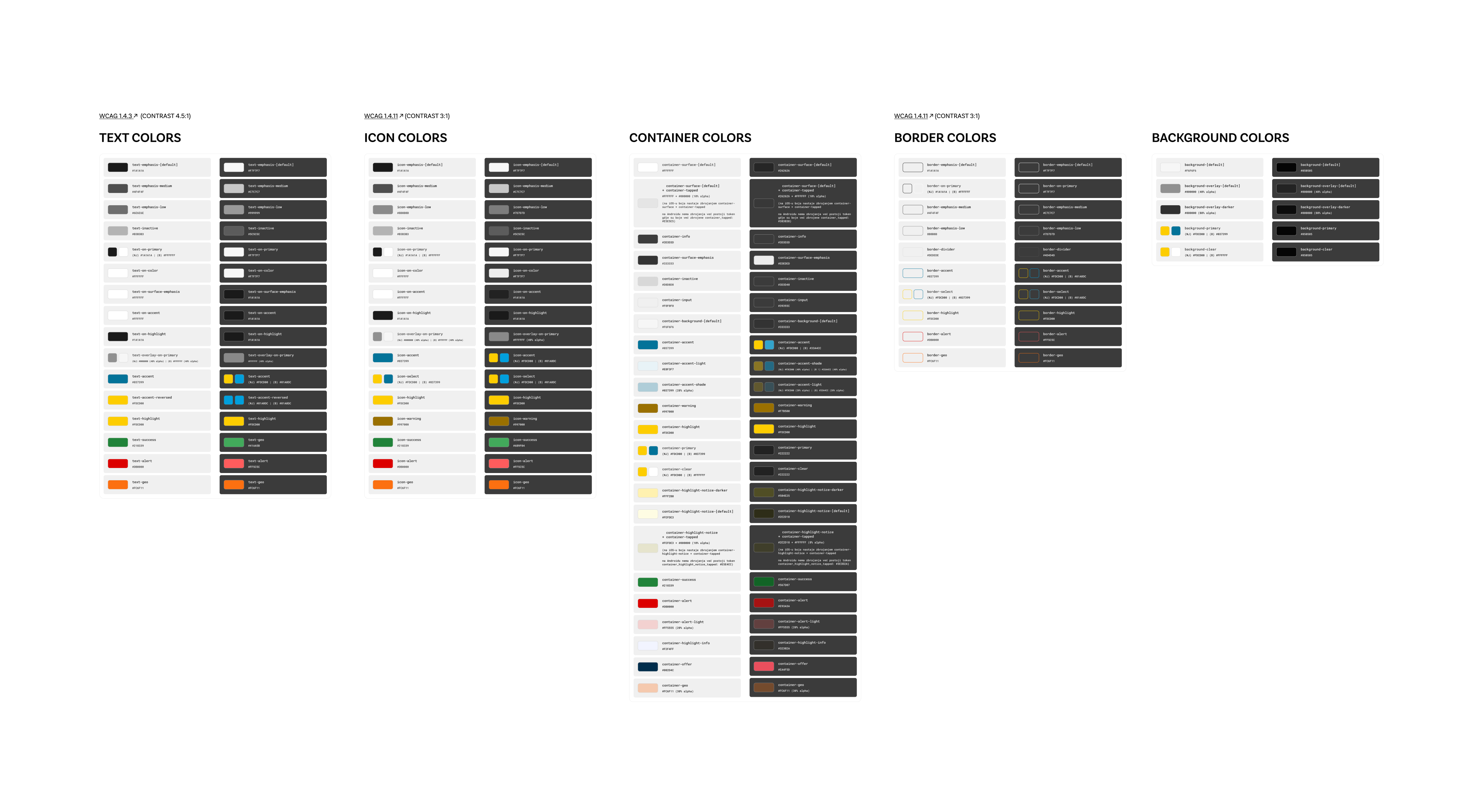 Colors from the existing palette were defined as tokens according to their purpose (icons, text, borders, containers, backgrounds).